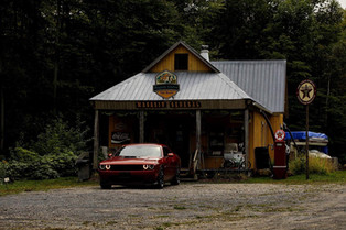 Family trips and Challenger have always rhymed well with us. We initially tested the Dodge Challenger R/T 6 years ago and drove around Vermont discovering farmers' markets and activities with the family. Then we got to try the Challenger R/T Shaker with its distinctive rumble and visited the city of Québec with the whole family. We were able to fit a stroller plus everything we needed to satisfy our little ones. We were more limited in the locations we could drive to feel its driving prowess this time around. We were still looking for something that matched and fitted the look and feel of the Challenger. We started driving in the Lanaudière region known for its small country roads that offer a beautiful view of Québec terroirs. Then we stumbled upon this hidden gem called the Magasin General Petit Moulin located in Sainte-Marcelline-de-Kildare. The convenience store presents vintage memorabilia, homemade Asian cuisine, and an exterior look reminiscent of something we would see off Route 66.