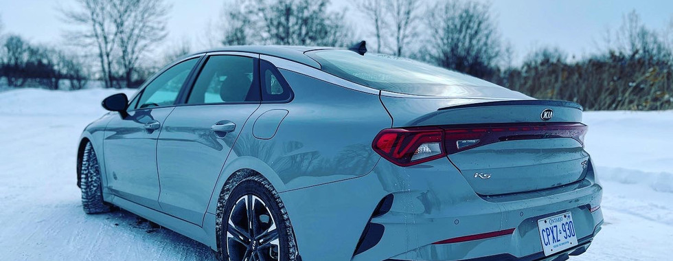 Moving on to the interior, even though it is sober compared to the exterior, it is loaded with features. Heated and cooled seats, heated steering wheel, wireless phone charger, Apple Carplay and Android Auto, the list goes on. It's not surprising as the Koreans have been adding optional equipment in their vehicles for almost a decade now, and it's a strong sales argument. We liked the wood trimming on the dashboard; it enhances the feeling of luxury inside the cabin. The leather seats are comfortable and more than adequate for road trips, whatever the duration. Legroom and headroom for rear passengers are ample, and the panoramic sunroof helps brighten the interior. The trunk is huge and practical for a small run to the supermarket or hauling the baby gear. Our only criticism would be that the ISOFIX ports aren't easy to reach. Otherwise, the K5 can easily be a family car.